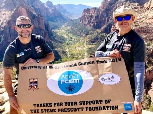 “On behalf of myself & Barrie 🏉 McDermott – many thanks to ACROBAT | FCSM & Adrian Stores who very kindly sponsored a flag for our @boltonUni Grand Canyon Challenge. The flag was carried all the way along, as can be seen in the image attached. With daytime temperatures reaching 30 degree, and night time temps dropping to -9, it certainly tested the body, physically and mentally. The flag crossed lake Powell via kayak, climbed up to 2100m mountains, and trekked around 90 miles. The SPF is very proud of the legacy left by Steve Prescott MBE and the inspiration he gives to people to support his chosen charities. The sponsorship you provided, goes to support The Christie in Manchester, the Rugby League Benevolent Fund (Try Assist) and the SPF Special Causes Fund. The SPF special causes fund allows those hospitals, researchers and surgeons who deal in Pseudomyxoma related conditions and multi visceral transplantation to apply for grants to the Trustees of the SPF who ensure that the money will have a direct and significant effect on peoples’ lives. Again, thank you for your support. Every ££ does indeed help to save and change peoples lives. Adrian (Cunliffe) & Barrie”.
